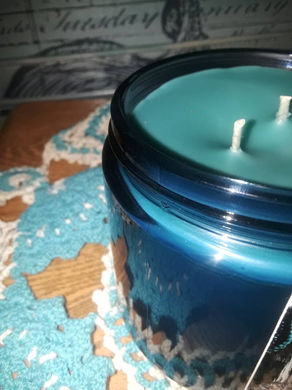 *BLUE GLASS JAR WITH DEEP AQUA WAX